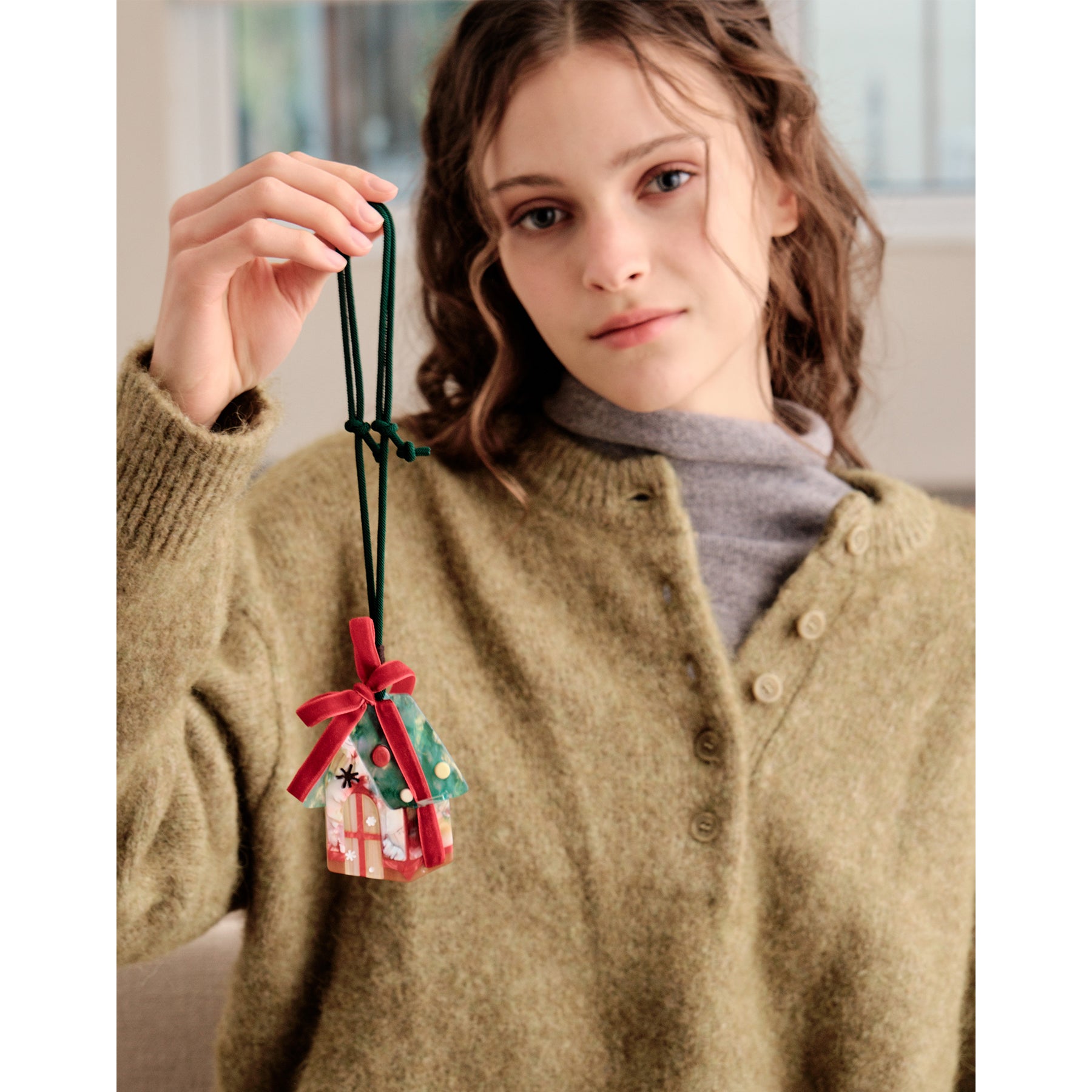 Whimsical Holiday Snowflake House Bag Charm